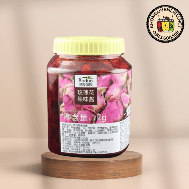 Mứt Boduo Hoa Hồng 1kg mang hương vị hoa hồng thanh tao, ngọt dịu, kết hợp cùng cánh hoa thật bên trong. Đây là nguyên liệu pha chế cao cấp, giúp ly trà trái cây, soda, cocktail hay yaourt trở nên sang trọng và khác biệt.